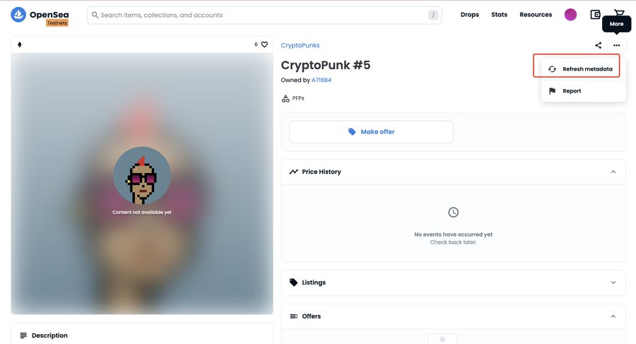 如发现 openSea 显示不出来图片,可手动刷新下 metadata